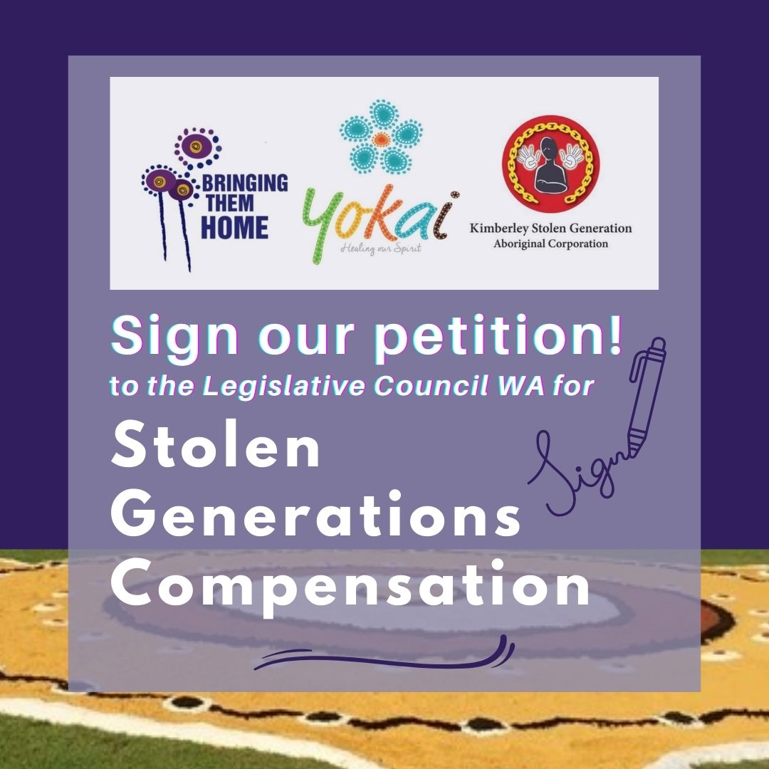 One of the recommendations of the Bringing Them Home Report into the Stolen Generations tabled 25 years ago was for a compensation scheme. While other states have schemes in place, sadly, WA does not. We want to change this before we lose any more of our old people. We have teamed up with Yokai Healing our Spirit and Kimberley Stolen Generation Aboriginal Corp to launch this petition today on Sorry Day.